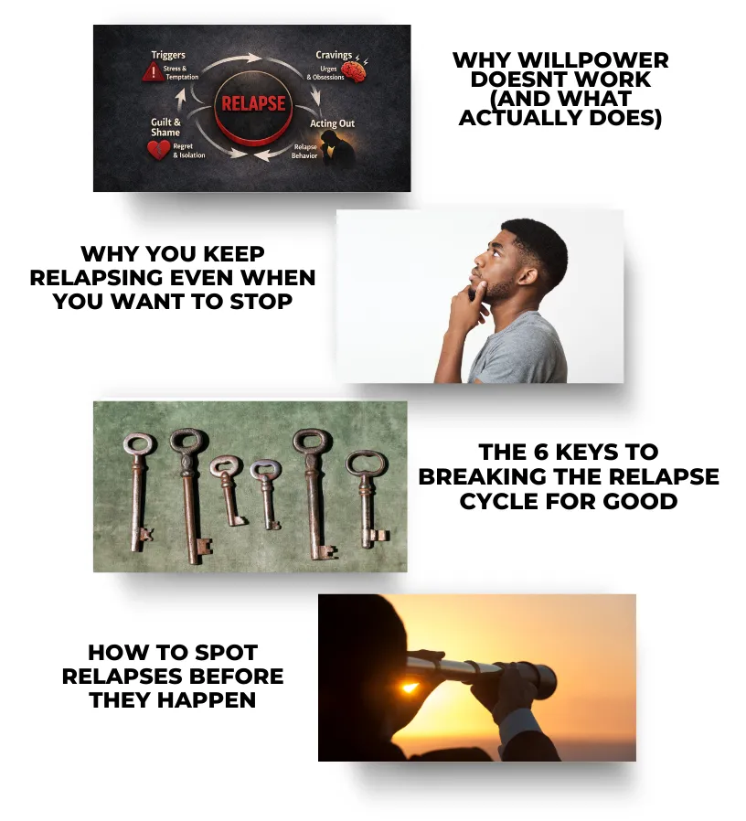 This program is designed to equip you with everything you need to pursue lasting freedom from pornography. However, your results will depend on your willingness to actively engage with the material, apply the principles taught, and seek support through the community.